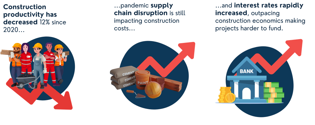 Despite great efforts across both the private and public sector, we simply cannot keep up with increasing cost of development. In part this has been due to a decline in productivity, in part its the cost of inputs which have remained high after the pandemic halt. In larger part however, the cost of capital has outpaced the other inputs, making it disproportionately expensive to finance the development of projects.